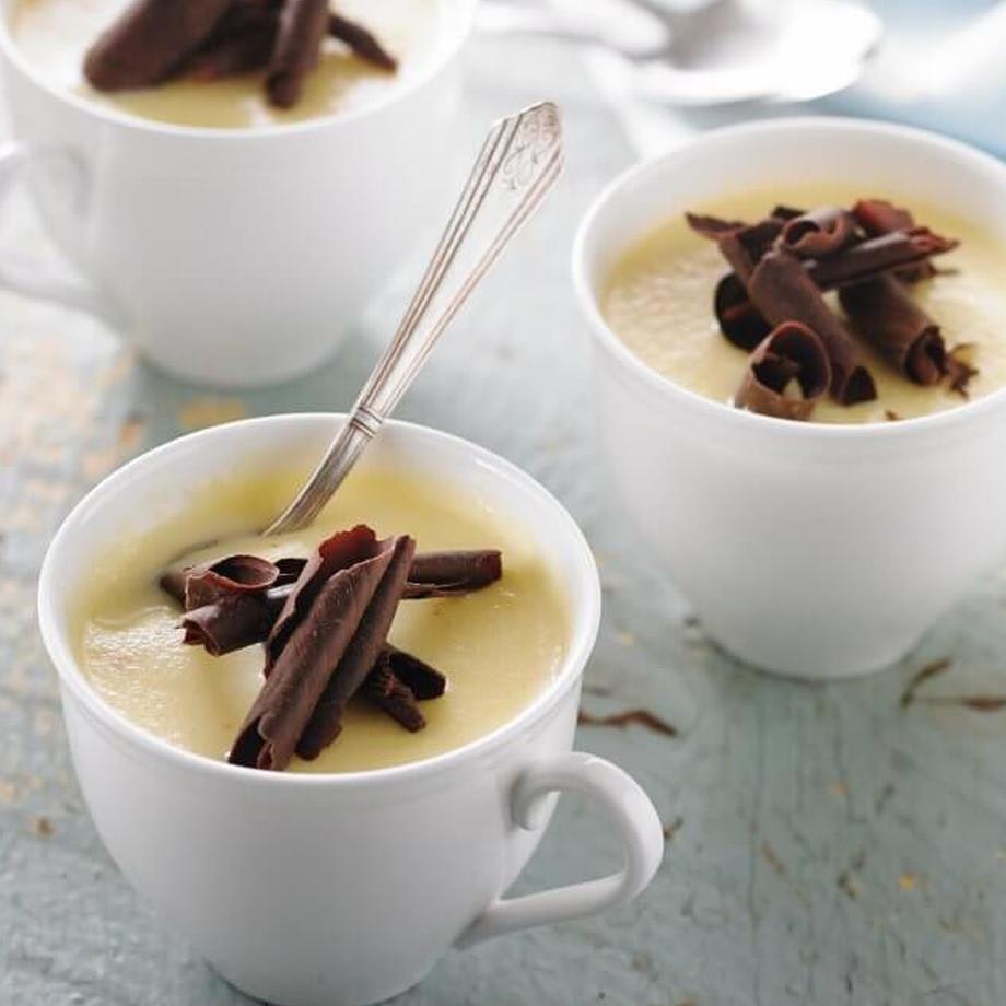 Crème caramel au fromage Magie de Madawaska et au whisky, craquelins à la fleur de sel