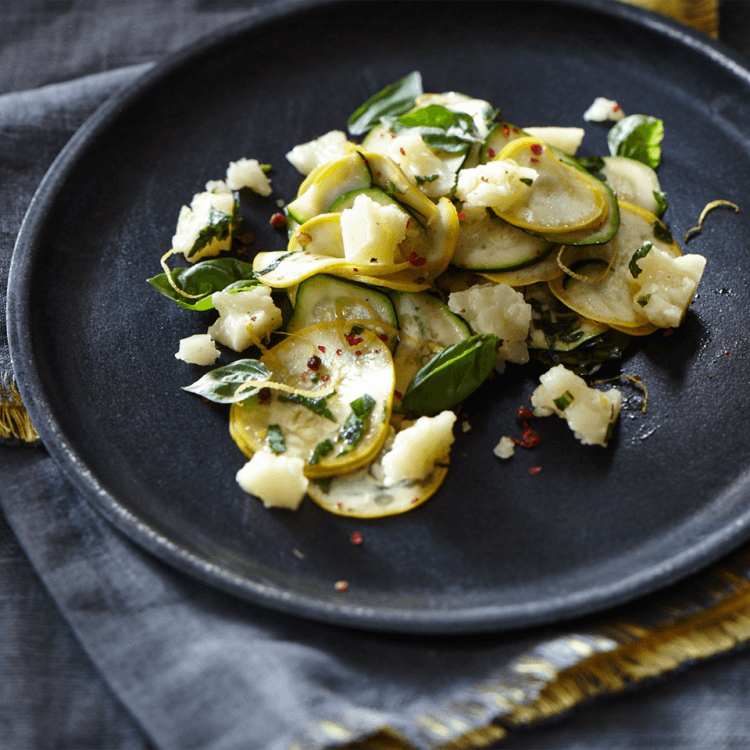 Salade de courgettes aux herbes, citron et fromage