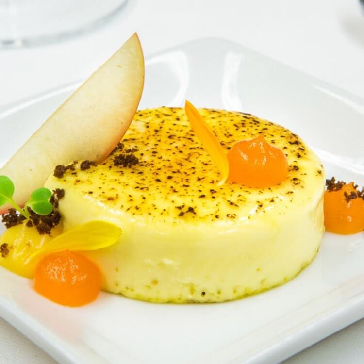 Crème brûlée au fromage Le Maria Chapdelaine, gelée à l'argousier