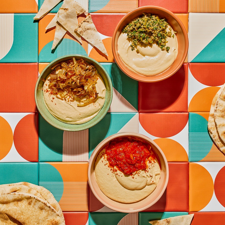 Hummus à la crème (garni d’olives, d’oignon confit ou de poivrons rôtis)