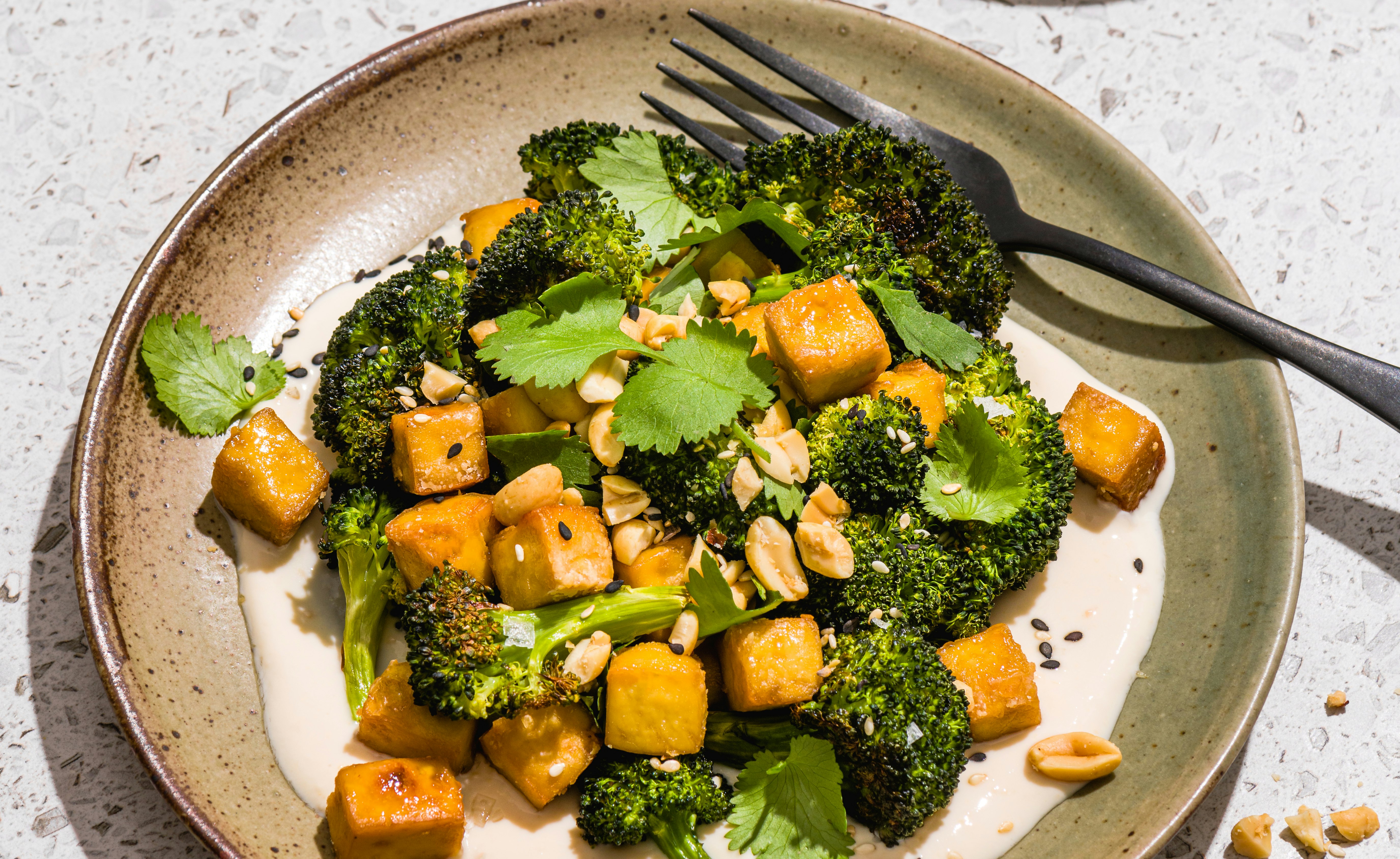 Brocoli et tofu rôtis avec vinaigrette crémeuse au miso