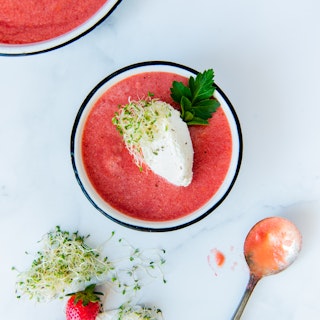 Gaspacho aux fraises avec ricotta