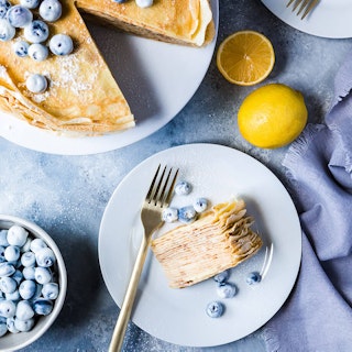 Gâteau de crêpes a la crème pâtissière et bleuets glacés