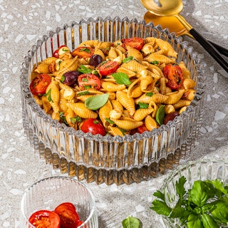 Salade de pâtes aux tomates séchées, olives et bocconcini