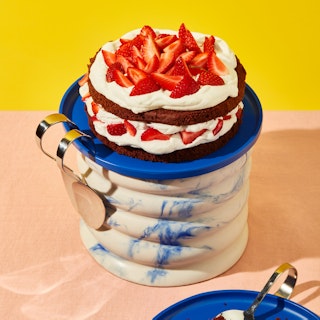 Soupe de petits fruits au vin rouge, panna cotta et granité de miel
