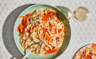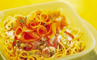 Spaghettinis à la sauce onctueuse garnis de saumon fumé