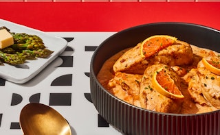 Poulet en sauce crémeuse à l’orange et aux fruits séchés