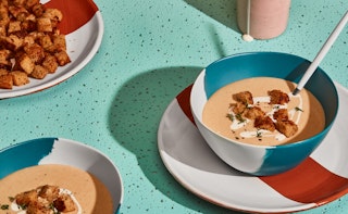 Potage à l’oignon rôti et croûtons de vieux pain