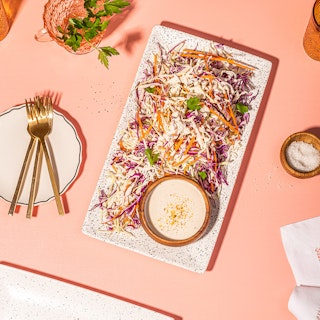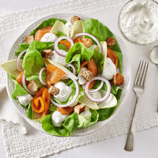 Salade de laitue et saumon fumé, vinaigrette fouettée à l’aneth et au citron