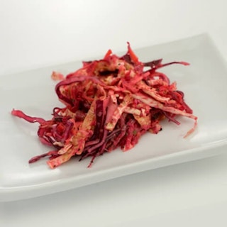 Salade de betteraves jaunes aux câpres et au prosciutto croustillant