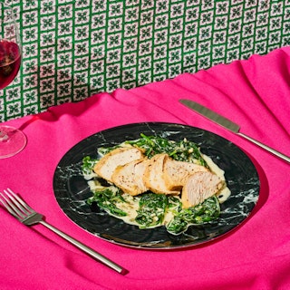 Poitrine de dindon glacée à l’érable et épinards crémeux