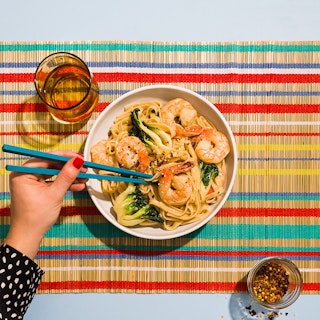 Nouilles de riz aux crevettes, sauce crémeuse au gingembre