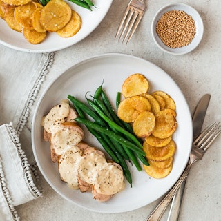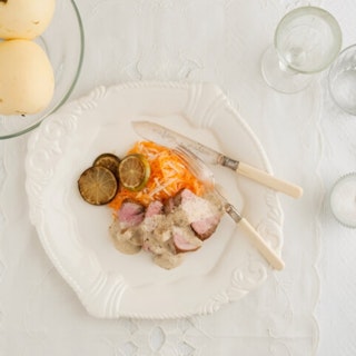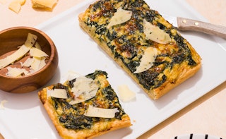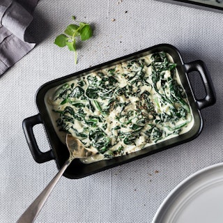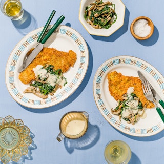 Escalopes de veau au parmesan, poêlée de champignons aux épinards et à la crème