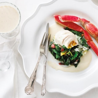 Filets de bar « petit bateau », crémeuse de bettes orangées, pattes de crabe d’Alaska, beurre blanc vanille-limette