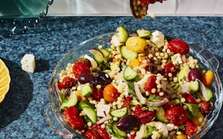 Salade de couscous perlé aux tomates rôties et au feta