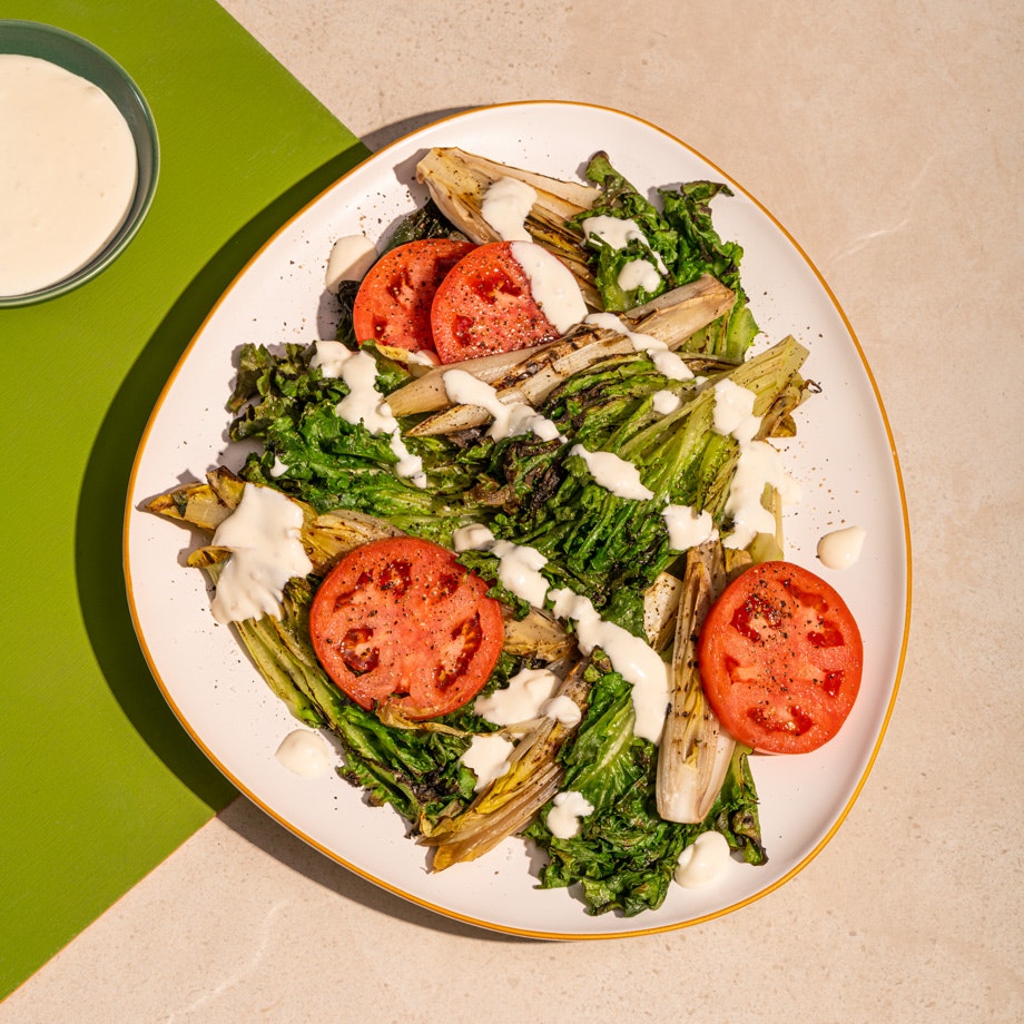 Mélange de laitues grillées et vinaigrette à la crème