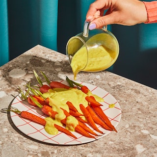 Carottes rôties, sauce crémeuse épicée