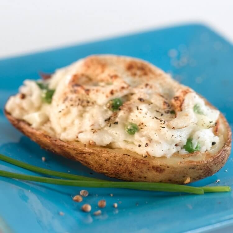 Pommes de terre farcies au poulet, aux poivrons grillés et au fromage