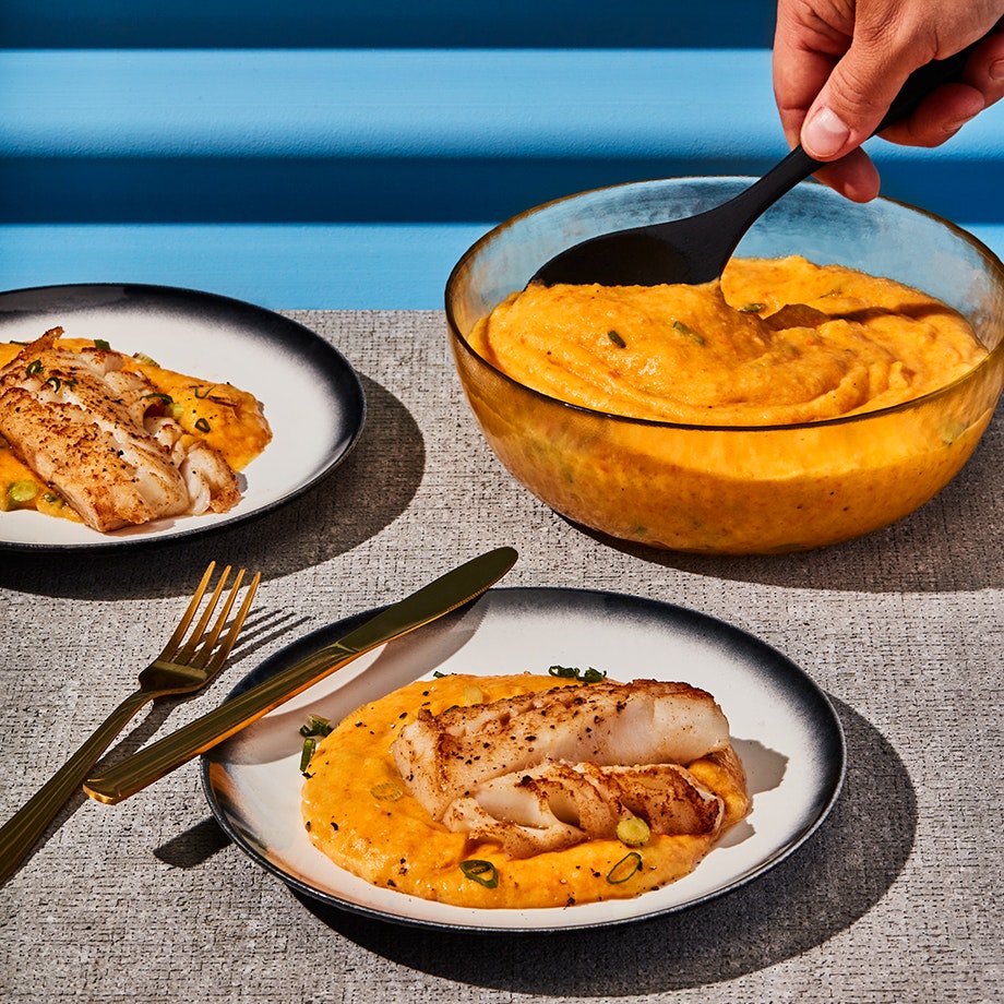 Pommes de terre menthe et coriandre fraîche, gratinées au D’Iberville