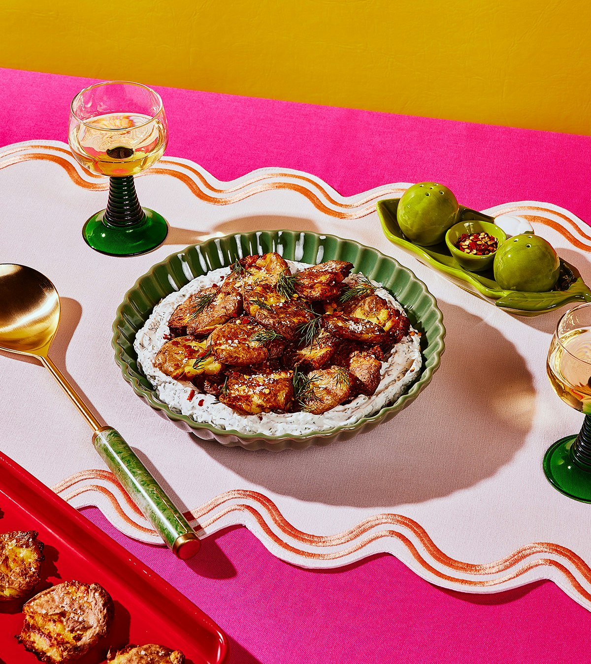 Revisitez les classiques avec cette recette de patates en accompagnement, servies avec un délicat labneh aux fines herbes qui allie gourmandise et simplicité.