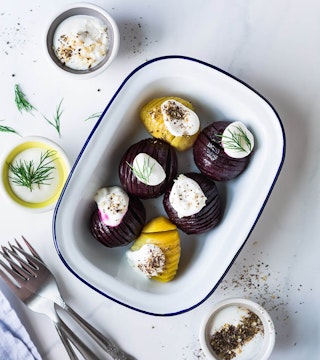 En fin de cuisson, on peut légèrement badigeonner les betteraves Hasselback d’huile d’olive pour les faire griller au four à gril (broil) quelques minutes, en surveillant bien la cuisson.