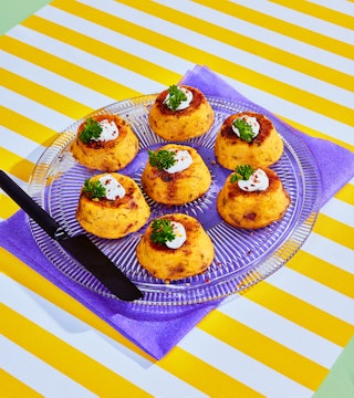Mini-gratins de purée de pommes de terre à la pancetta et au fromage