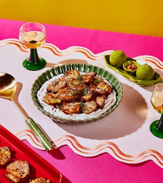 Revisitez les classiques avec cette recette de patates en accompagnement, servies avec un délicat labneh aux fines herbes qui allie gourmandise et simplicité.