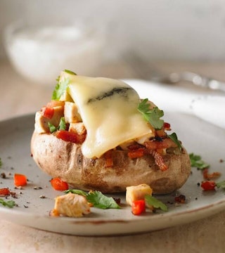 Pommes de terre farcies au poulet, aux poivrons grillés et au fromage