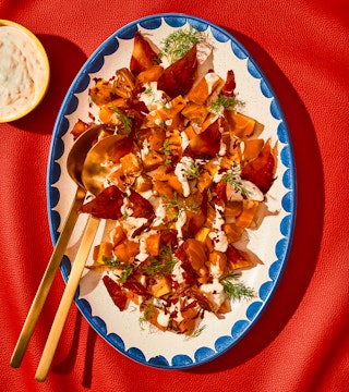 Le mélange de crème fraîche se conserve au réfrigérateur de 3 à 4 jours. Le prosciutto croustillant se conserve jusqu’à 1 semaine au réfrigérateur, mais l’assemblage doit être fait au dernier moment. Si les betteraves jaunes ne sont pas complètement cuites, elles risquent de s’oxyder et de noircir.