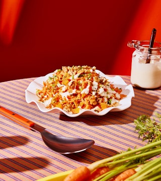 Une salade de carottes râpées, abricots et noix avec une vinaigrette crémeuse. Végétarienne et sans gluten, prête en 20 minutes!