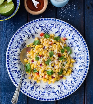 ● Si vous utilisez du maïs en grains congelé, augmenter le feu à moyen-élevé et cuire environ 5 minutes supplémentaires, ou jusqu’à ce que le maïs soit tendre et chaud.↲ ● On peut servir l’esquites accompagné de sauce piquante, et ajouter des dés d’avocat, si désiré.