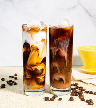 - Mélanger le concentré de café infusé à froid avec du lait et une banane pour en faire un smoothie.