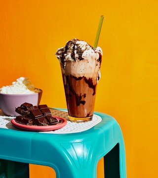 Le mélange d’espresso, de café soluble, de sucre et de sirop de chocolat peut être fait à l’avance. Il est possible de le conserver au réfrigérateur pendant 3 jours dans un contenant couvert.