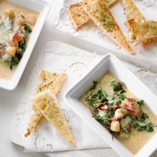 Trempette chaude aux pétoncles, au bacon et à la roquette