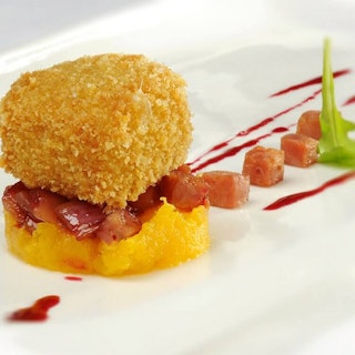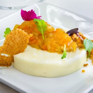Le Champfleury en croûte de cumin sur courge et saucisse de Morteau