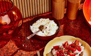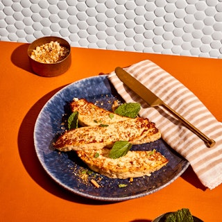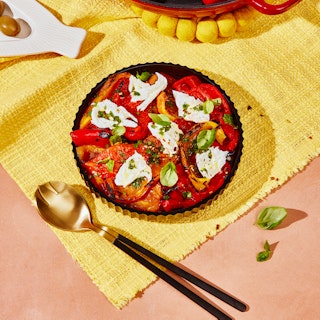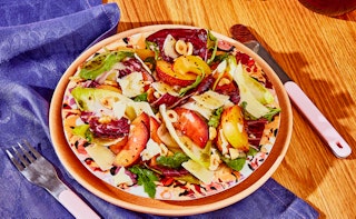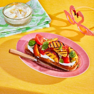 Courge grillée, ricotta, verdures et vinaigrette aux herbes