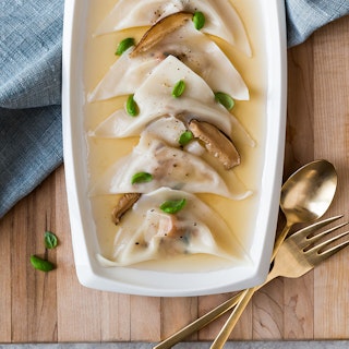 Feuilletés aux pétoncles, au poireau et au Suisse, sauce au safran