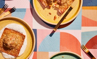 Gravlax à la betterave, crème fraîche au raifort et à l’aneth