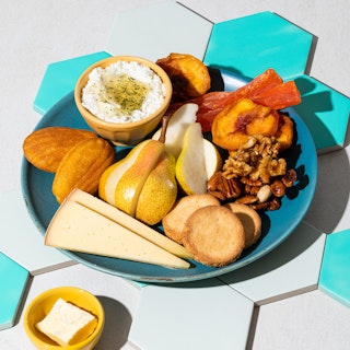 Plateau de fromages d’ici, noix, fruits et miel au romarin