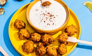 Beignets de morue frits et trempette citronnée aux câpres (style Acras)