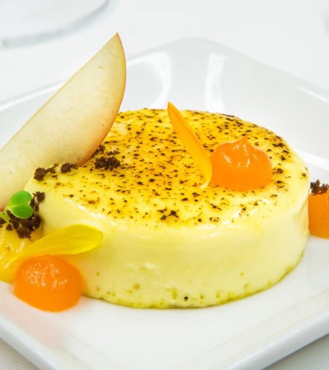 Crème brûlée au fromage Le Maria Chapdelaine, gelée à l'argousier