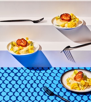 Pétoncles poêlés et purée de pommes de terre au fromage