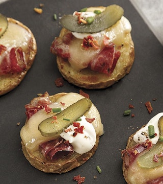 Remplacer le prosciuttini par une charcuterie au choix (jambon, mortadelle, salami…). Garnir les tranches de pommes de terre d'olives vertes ou noires et d'oignons perlés marinés.