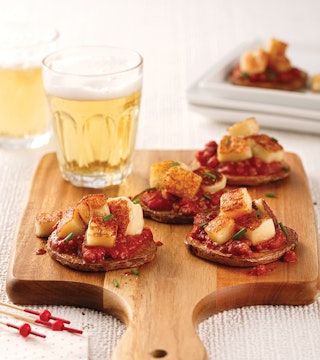 Le fromage utilisé dans cette recette est un fromage à griller de type halloumi, ce qui signifie qu'il ne fond pas pendant la cuisson et qu'il conserve sa forme. En version grillée, il se prête à une foule de recettes pour recevoir : en mini-brochettes, pour des bouchées figues et fromage, dans un mini-burger, marié à d'autres garnitures sur un canapé et même en simples cubes piqués sur un cure-dent. Miam !