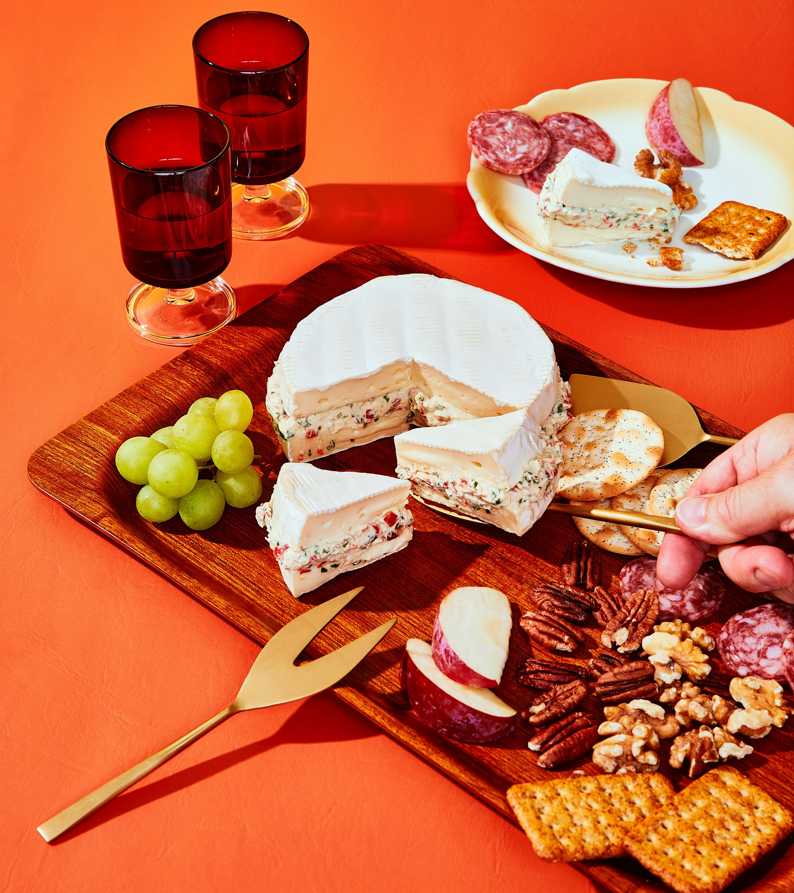 On peut servir ce fromage avec du pain, des craquelins ou des biscottes.