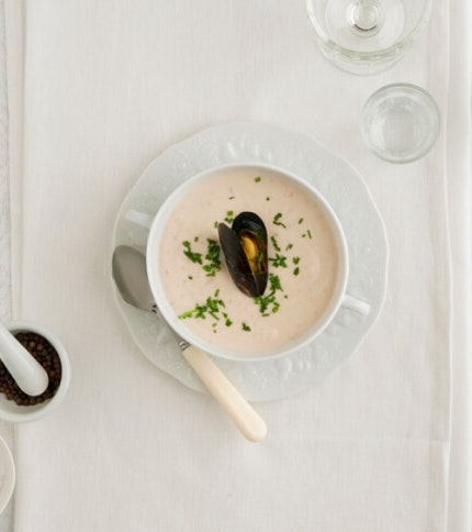 Cappuccino de moules à la crème de chou-fleur