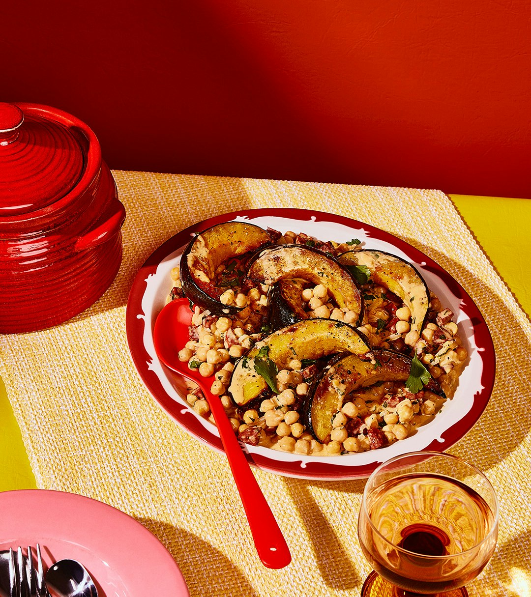 Courge rôtie et pois chiches au chorizo