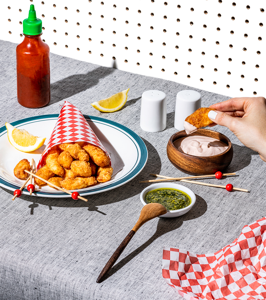 On peut aussi mariner les morceaux de fromage en grains dans un mélange de 250 ml (1 tasse) du babeurre et 250 ml (1 tasse) de bière blonde.