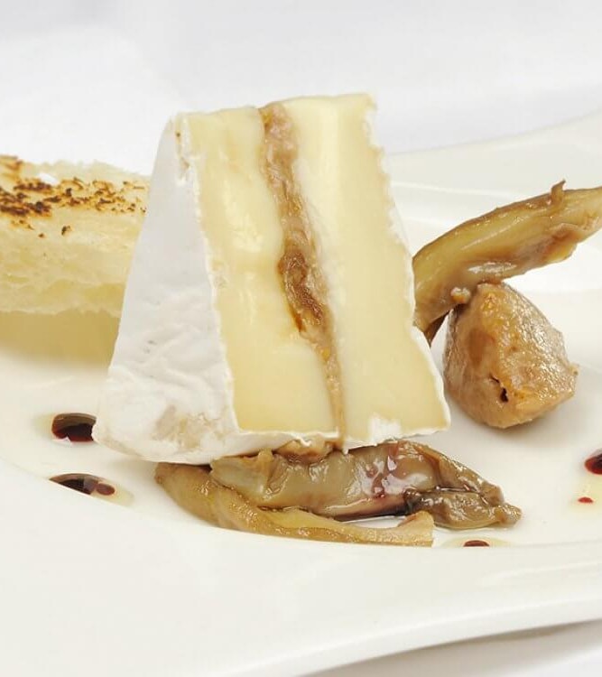 L’Inspiré à la pâte de figues et noix, garni de pleurotes marinés