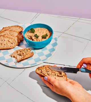 Cette mousse peut être tartinée sur du pain grillé, des craquelins ou des rondelles de légumes.